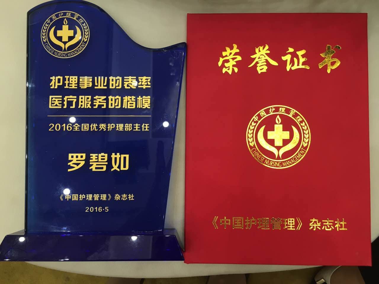 在开幕式上,对获得2016年“优秀护理部主任”奖和“十大杰出护理工作者”的护理管理人员进行了颁奖,共有103名优秀护理部主任和10名杰出护理工作者获得表彰,我院罗碧如主任荣获2016年全国“优秀护理部主任奖”。