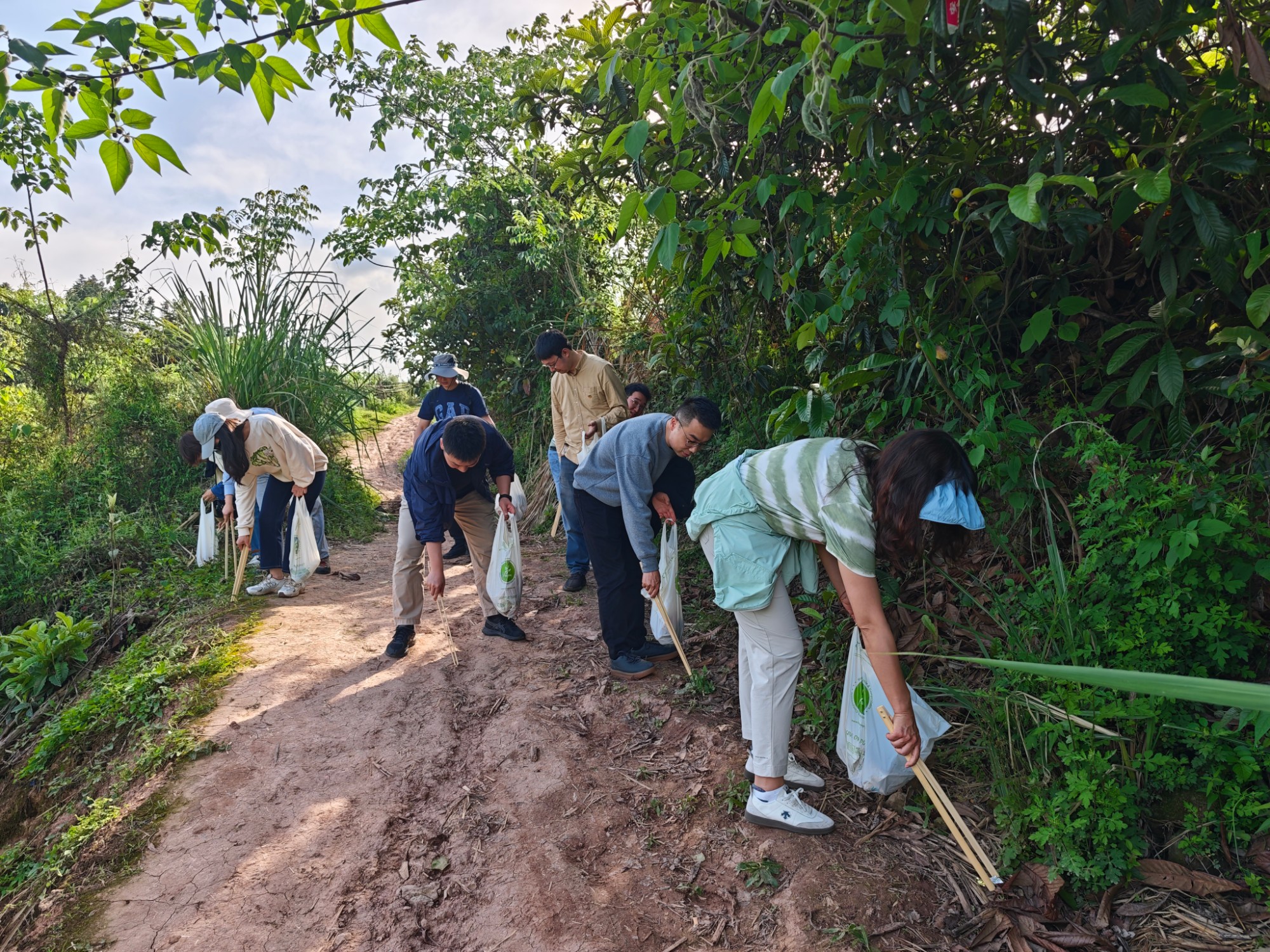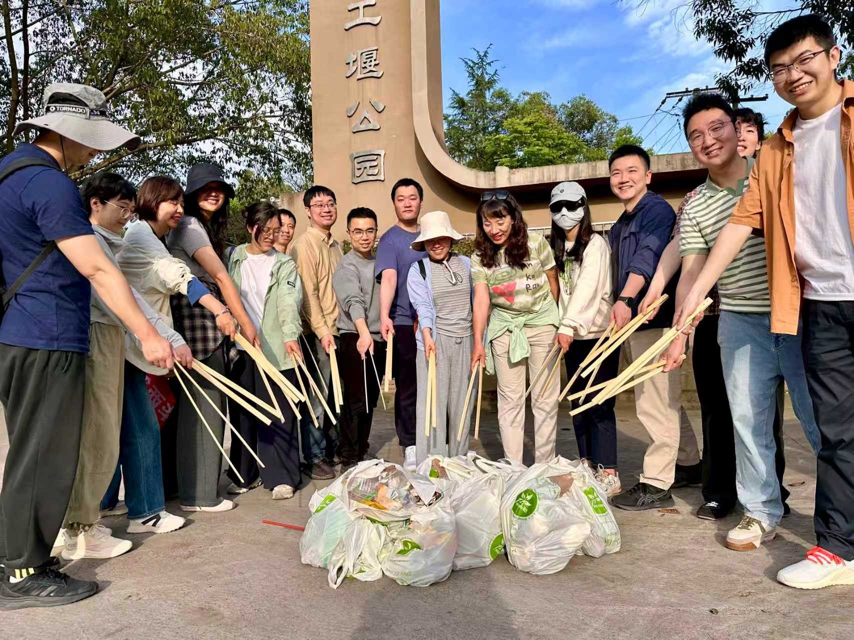 活动伊始,支部党员们佩戴党徽、精神饱满,手持垃圾钳、环保袋等工具,在支部书记陈静同志的带领下集结完毕,明确了徒步路线与净山任务——沿百工堰环湖开展垃圾清理,重点捡拾塑料瓶、食品包装袋、烟头、纸屑等不易降解的废弃物。