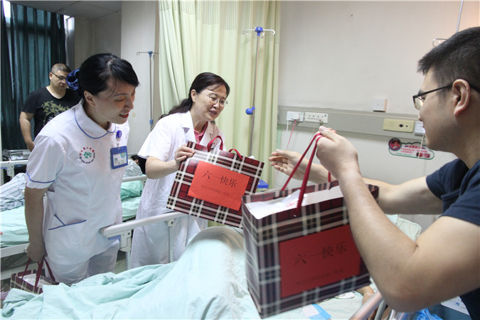 6月1日上午,由党委王红静副书记带队,张进总会计师、党办、院办、工会、儿科、宣传部等职能部门走进临床,看望和慰问来我院就诊住院患儿。首先是给产科刚出生的宝宝们送上节日的祝福和精美的礼品,随后又来到儿科病房和门急诊,看望生病住院的孩子们,孩子们不仅收到礼物,还收到医院对他们的祝福,希望小朋友们节日快乐、早日康复,健康成长!并对奋战在儿科、产科医护岗位的医务人员表示了亲切的慰问。(供稿:李娜 摄影:刘瑞雪)