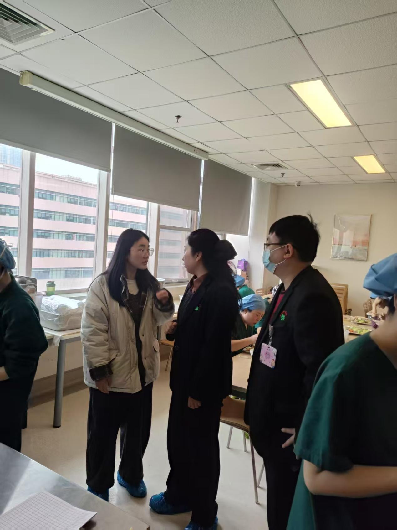 为确实保障一线医务人员的饮食需求,筑牢医疗服务后勤防线,2月2日后勤管理部副部长陈祥赟带领营养膳食中心负责人及部分管理人员前往锦江院区手术室,专项检查手术室餐食供应与保障工作。