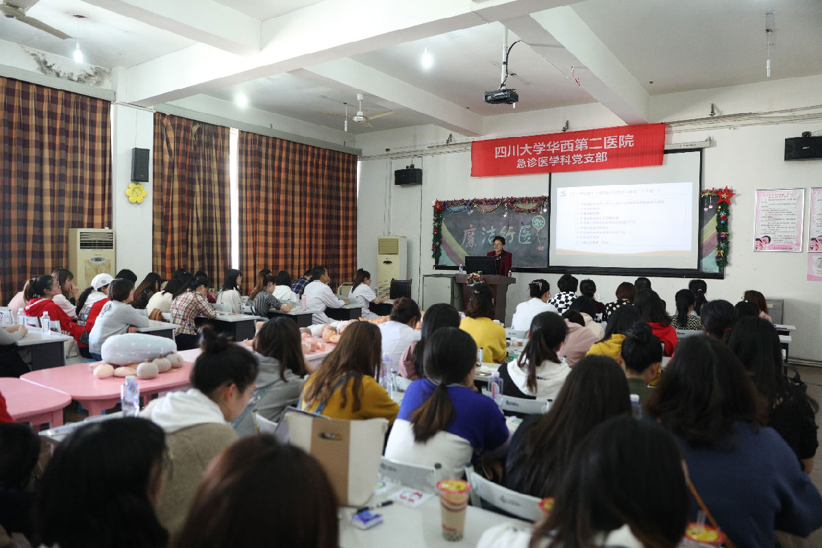 为带领科室党员同志及全体员工继续深入贯彻党风廉政建设,推动急诊医学科“廉洁行医”工作再上新台阶,2019年3月29日下午,急诊医学科举行党支部扩大会议,并邀请医院党委王素霞书记就“廉洁行医”讲了一堂题为《践行合格共产党员标准做一名优秀医务工作者》的主题党课。会议由急诊医学科主任、党支部书记李熙鸿主持,科室副主任、护士长、全体党员及科室员工90余人参加了此次会议。