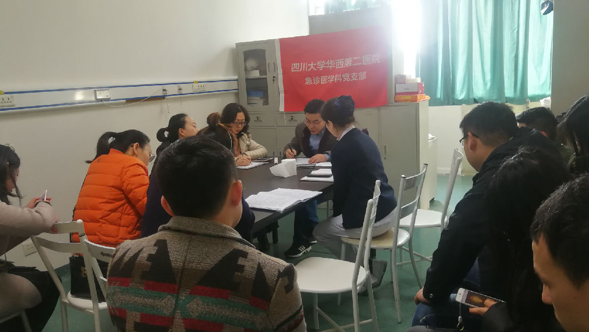 2020年1月19日下午,急诊科党支部在华西院区办公室组织生活会。会议由李熙鸿书记主持,支部全体党员参会。