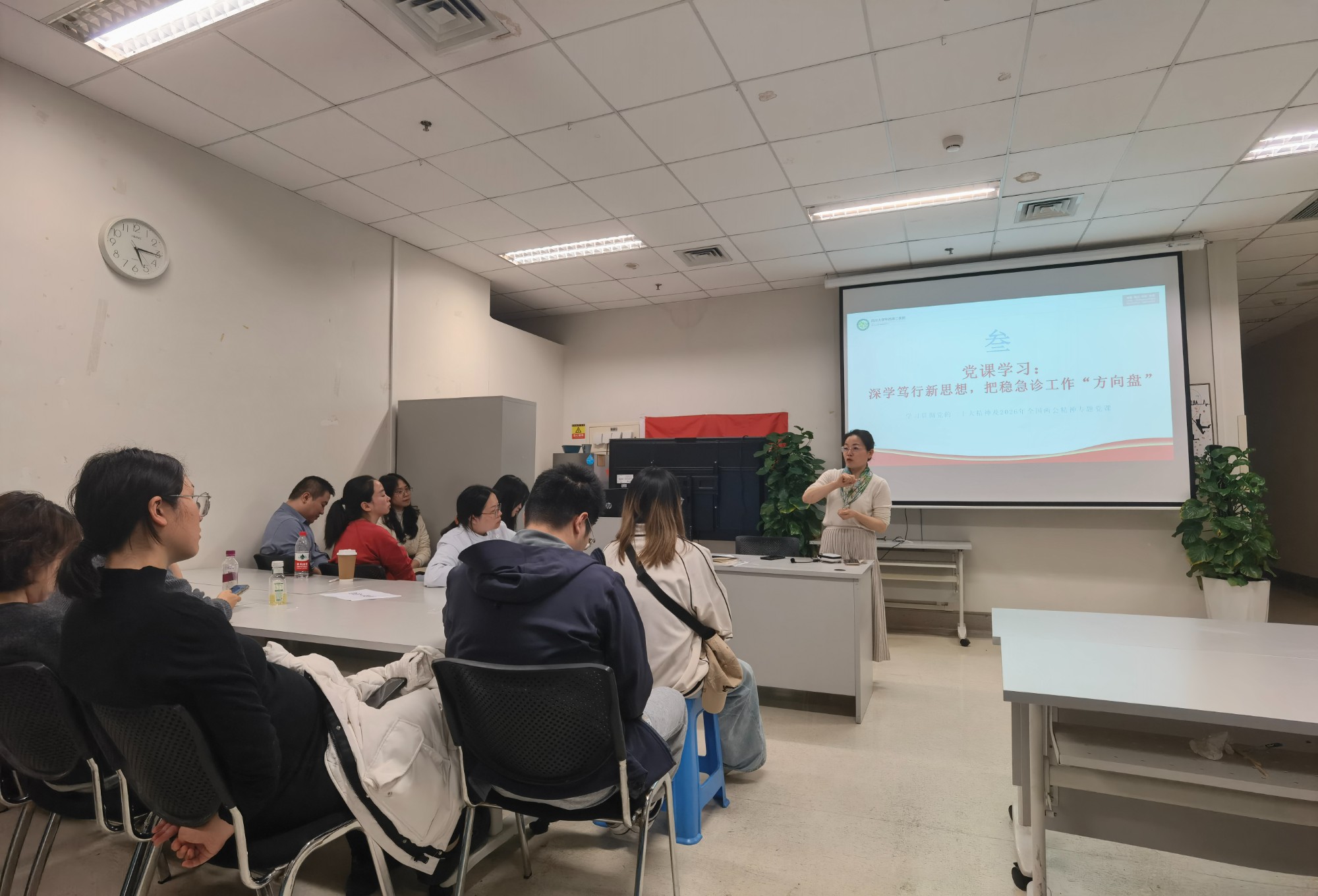 党支部书记胡娟就学习贯彻党的二十大精神及2026年全国两会精神开展“深学笃行新思想,把稳急诊工作“方向盘””专题党课。随后,各支委依次汇报了近期党费收缴、廉洁建设、工会工作、团支部工作开展情况。
