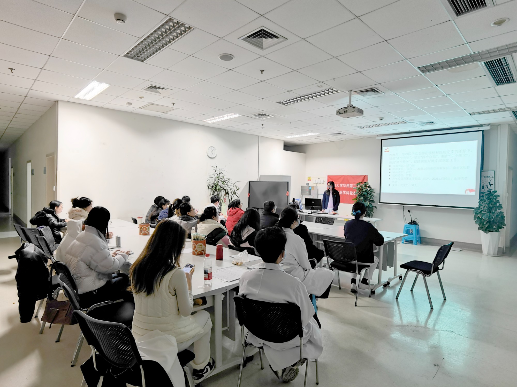 随后,党委委员周圣涛同志结合急诊工作实际作补充发言。他肯定急诊党员在急难险重任务中坚守冲锋、诠释初心的担当与素养;希望大家牢记 “人民至上、生命至上”,精进业务、强化协作、严守细节;鼓励大家保持奋进姿态,党组织将全力做好后盾,助力大家守护群众生命健康。