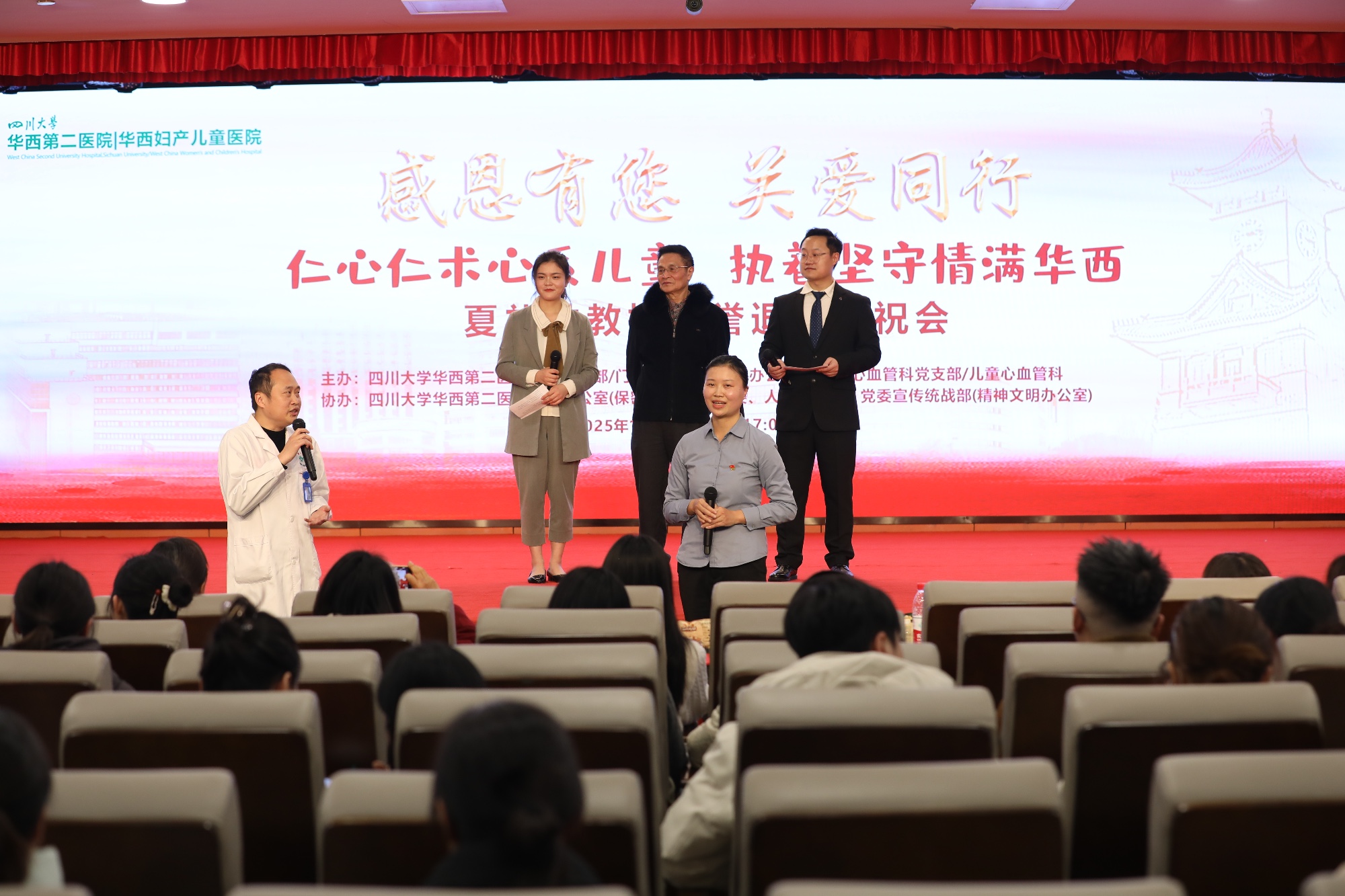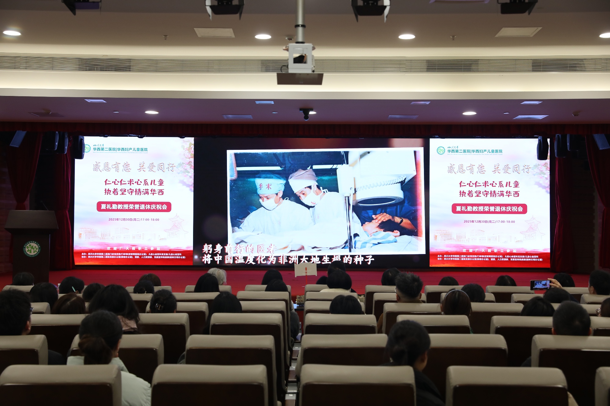 2025年12月30日,医院门诊党支部/门诊部与儿童心血管党支部/儿童心血管科联合举办“感恩有您 关爱同行”系列活动之“仁心仁术心系儿童,执着坚守情满华西——夏礼勤教授荣誉退休庆祝会”。医院领导、相关部门负责人、科室同仁齐聚一堂,共同向为医院奉献五十余载的夏礼勤教授表达崇高敬意与真挚祝福。