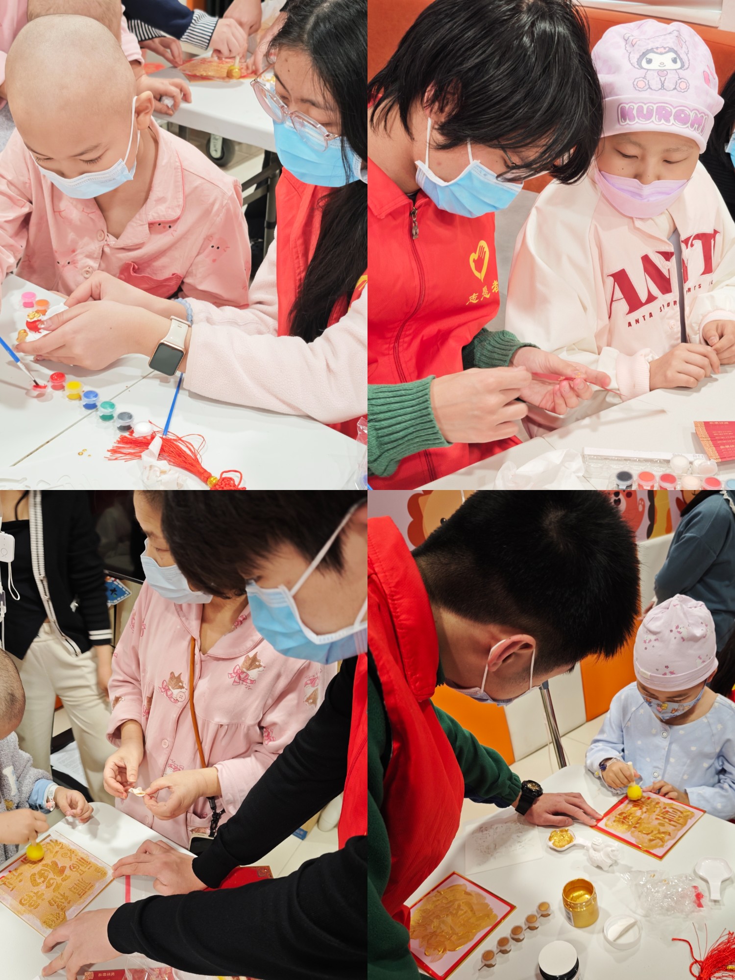 本次活动旨在为正在接受治疗的血液肿瘤患儿及其家庭送去新春的祝福与陪伴,缓解疾病和治疗带来的心理压力,让他们在病房中也能感受到传统佳节的喜庆与温暖。在医护人员和志愿者的精心组织与陪伴下,孩子们暂时忘却了病痛,沉浸在创作的快乐中。