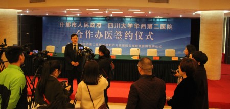 德阳市卫生计生委副主任胡立希望此次合作可以极大提升什邡市妇幼保健院整体管理及业务水平,形成“小病在基层,大病到医院,康复回社区“的就医格局,让什邡妇女儿童在家门口即能享受到国内最先进的医疗保健服务。