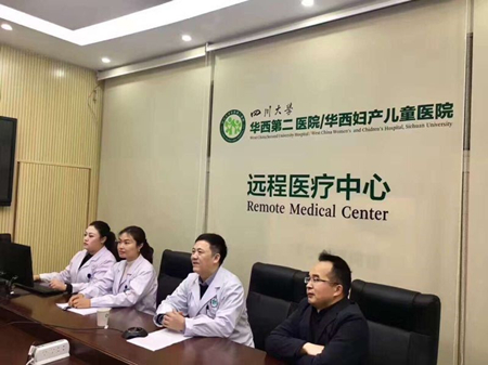 前来就诊的患者在汉源就可以和进行面对面的交流,同时汉源县人民医院的陪诊医生将按照华西第二医院的要求进行查体,华西第二医院的将结合病史描述、查体结果、检查结果给出权威的诊断和治疗。如果汉源县人民医院没有的检查将通过网络门诊直接预约到华西二院进行检查,用药时,汉源没有相应的药品将通过华西二院直接配送到家。此次网络门诊共计诊治儿科患者20名,华西第二医院的耐心地为每位患者进行了检查和诊治方案指导。
