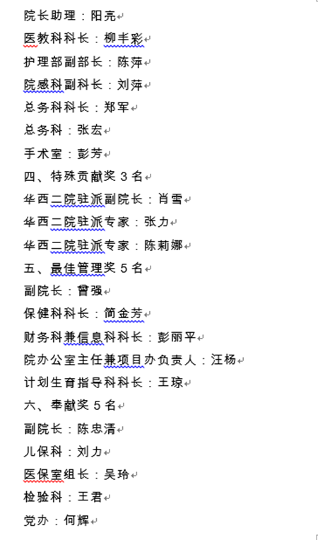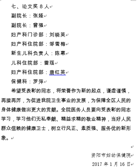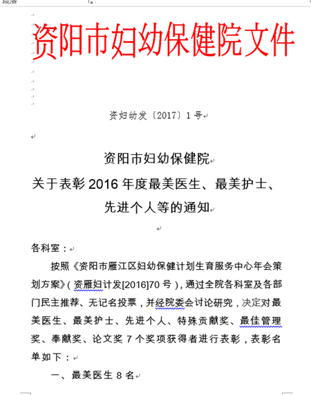 3个月来,我院受邀医护人员20余人次,专科查房百余次,教学讲座30余次,受到当地政府、医院领导、医护人员和患者的一致好评。日前,资阳市妇幼保健院对2016年工作成效特别突出者进行表彰,我院肖雪、张力、陈莉娜三位医生喜获“特殊贡献奖”,以表彰她们在资阳妇保事业做出的贡献,特此祝贺!我们号召全体医护人员向受表彰的医生学习,继续发扬华西精神,为华西第二医院的事业做出新的贡献,为国家医改事业发挥光热!(供稿王海英)