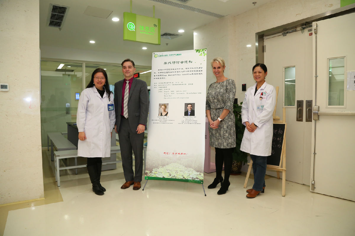 为进一步规范卵巢癌的诊治,促进对外交流与合作,1月21日14:30,在医院领导、院办、妇产科、妇科的支持帮助下,我科特邀请到美国耶鲁大学院妇产科和生殖科学系副教授、妇科肿瘤、早期卵巢癌检测及治愈研究计划主任、卵巢癌NCCN指南组成员Elena Ratner以及妇产科和生殖科学系副教授、超重患者机器人手术计划主任、“发现治愈”妇科肿瘤学国际研究金项目主任Dan-Arin Silasi来我科进行学术研讨。本次学术交流在妇科肿瘤放化疗科示教室举行,尹如铁主任、李清丽副主任、何亚林护士长及本科室医护人员、妇科青年医生在内的20余人参加了讨论。