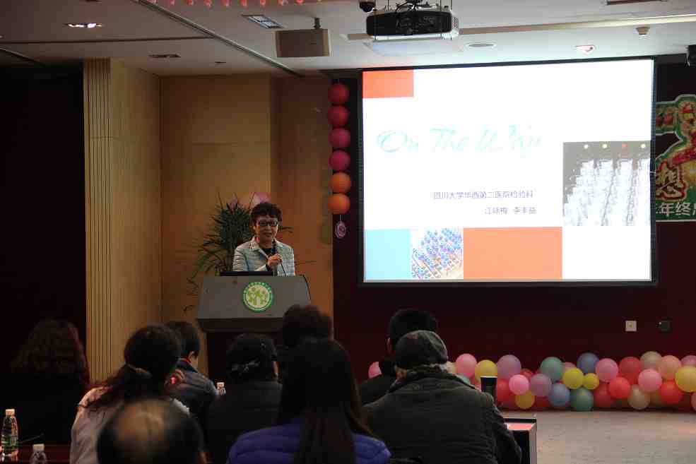 江咏梅主任总结了检验科2014年在医、教、研各方面取得的成绩。充分展现了这个集体2012年至2014年来在医院的关爱下、各临床科室和行政职能部门的大力配合下成长的足迹。