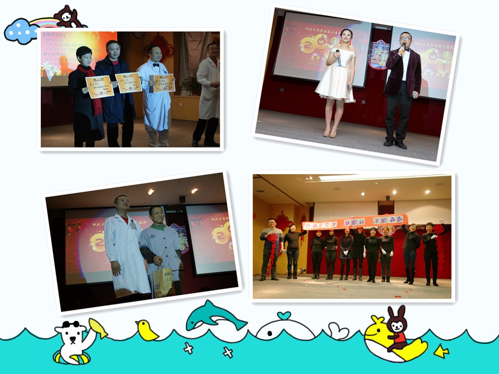 随后,科室对临床顾问、退休老师给予了节日的慰问,还对忙碌于检验科标本运送和保洁的各位工人送出了关心,对2015年度优秀员工给予了表彰。最后,检验科精心准备的文艺演出和游戏环节给现场的各位来宾带来了无数的欢笑,尤其是规培学生编排的小品《非探视时间》、血库组精彩的舞蹈《天鹅湖选段》以及生化组的歌舞《相亲相爱》给大家留下了极其深刻的印象。