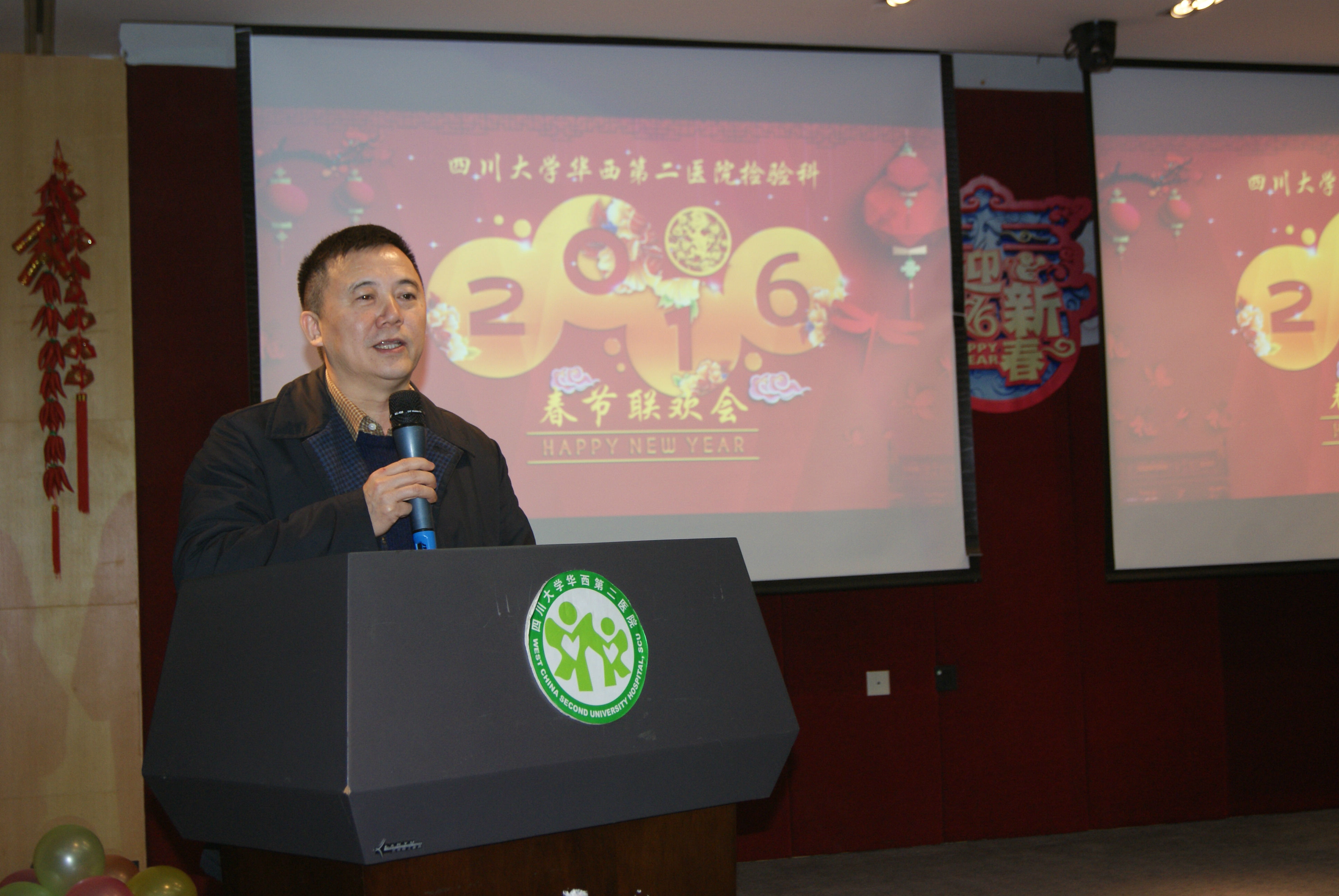 2015年2月3日,检验科在研究院二楼举行了2015年年终总结暨新春联欢会。医院领导张林院长、王素霞书记、郄明蓉副院长、刘瀚旻副院长、王红静副书记、王晓东主席、张进总会计师、伍金林院长助理等以及各临床科室、行政职能部门的老师们和检验科全体员工共计200余人参加了会议。