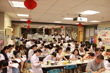 接着,为进一步检验每日晨会学习“应知应会”和“三基三严”的效果,科室采用闭卷的方式,对全体员工进行了别开生面的书面考核。老师们通过自觉的学习和认真的准备,在考试中均发挥良好,考出了令人满意的成绩:全科118人参加考试,17人病事假,平均成绩98.4,其中一共有61人考取了满分!
