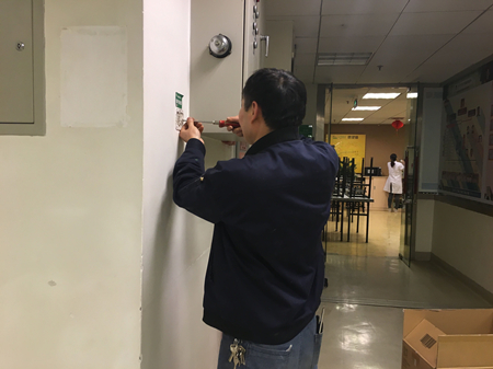 检验科长期以来将安全防患措施贯穿于每日的各项工作当中:每年开展两次消防演习;利用晨会、业务学习等活动,开展定向性的消防知识培训和教育;定期不定期进行消防隐患自查。12月14日,为进一步做好消防安全工作,消除隐患,检验科特别请来后勤管理部的老师为研究楼实验室的插座做全面的更换。