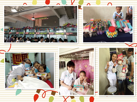 在今年的6.1送祝福活动中,科室的老师们再次创新:样本采集组的老师除了用鲜艳的气球、拉花把采血大厅内外装点一新之外,更在采血取号点为小朋友们开设了一个免费的礼物领取点,为前来采血的小朋友送去祝福;对于身在病房的小朋友,老师们还带上小礼物,亲自把祝福送至他们的手中,让每一个孩子都感受到了来自检验科的温暖。(撰稿 伍黎黎 刘小娟 江咏梅 摄影 梅兰)