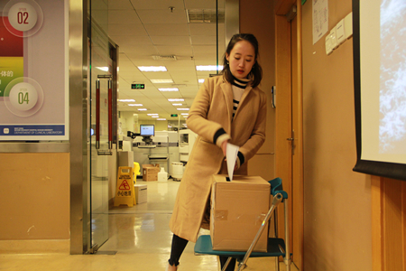 张进总会计师首先介绍了2016年医院测评的原则。随后,检验科江咏梅主任以“存在VS价值”为发端,以“好马配好鞍”为主线,从思政建设、领导能力、工作业绩、医教研管、党风廉洁等几个方面详细总结了检验科这一年来的工作、收获和成绩;之后,她又从德、勤、能、绩、廉、健等六个方面进行了个人述聘。最后,科室全体员工对科室领导层的工作表现进行了民主测评。