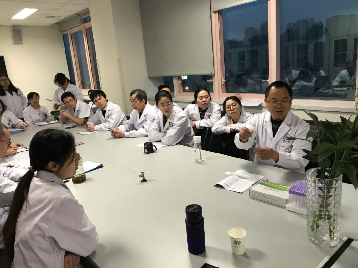 为临床服务、造福患者是检验科长期以来不懈追求的工作宗旨之一。为了携手临床科室全面提高我院医疗服务质量,检验科每周都会安排相关专业组老师去到各临床科室(包括锦江院区),参加他们的晨会交班,听取临床意见、分享检验新知、探讨疑难病症。