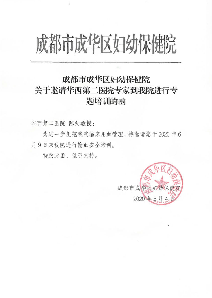 华西成华妇女儿童医院邀请函