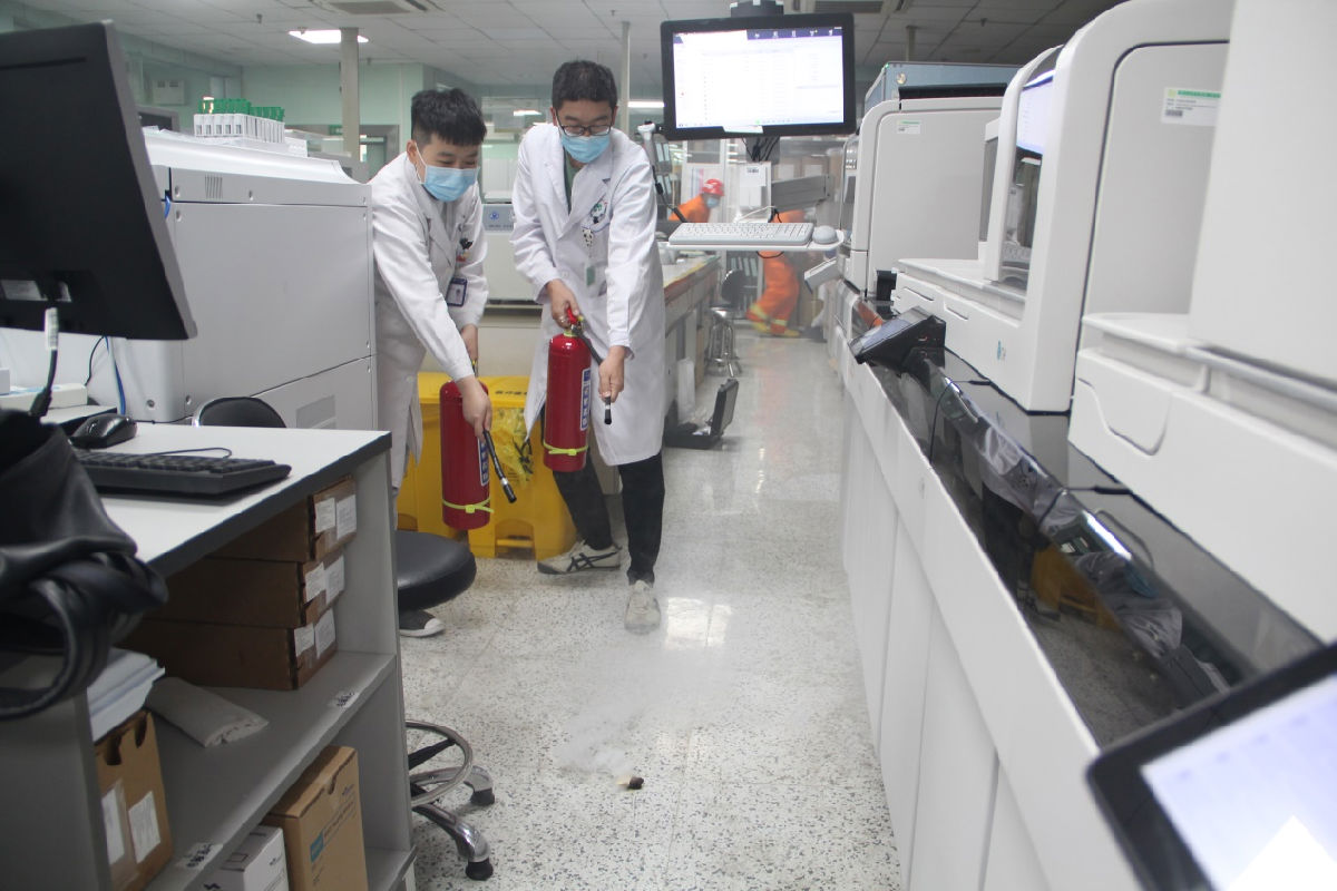 为切实加强检验科的日常安全工作,提高全员安全消防素质,安全防范和自救能力,及时排除消防安全隐患,近日,我院检验科联合消防管理部门在华西院区急诊检验科举办了2021年度上半年消防演练。演练内容涵盖安全知识培训,以及模拟发现初期火灾,报警。疏散逃生、扑灭初期火灾等一系列演练。最后全体医护人员到空旷地带进行灭火器的使用。