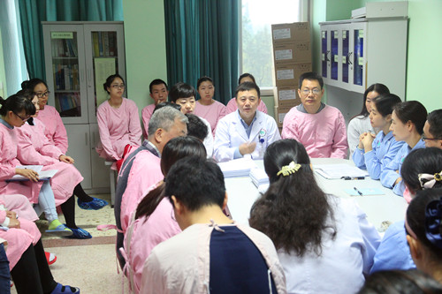 2015年11月3日,院长张林教授带队至新生儿科现场调研,常务副院长母得志教授、副院长郄明蓉教授及医务部、医院办公室负责人参加了座谈。