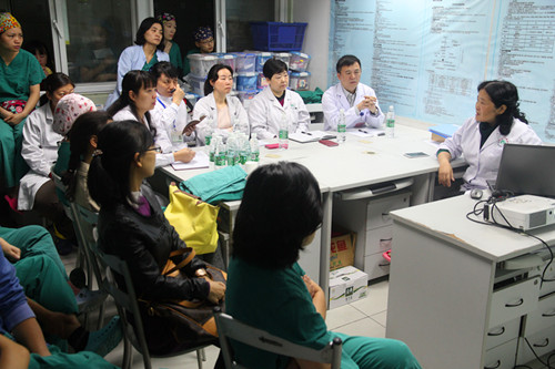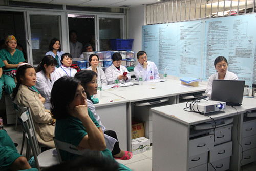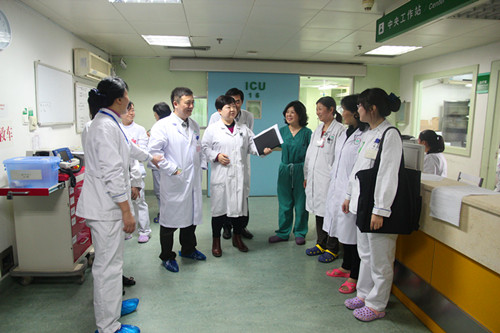 2015年11月4日,院长张林教授带队至麻醉科、妇产科重症监护室现场调研,副院长郄明蓉教授及医务部、护理部、医院办公室负责人参加了座谈。