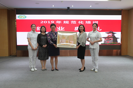 结业典礼由教务部王慧卿副主任主持。首先,医院张伶俐副院长讲话,她首先对各位学员的顺利结业表示祝贺,对教务部在规培学员的组织管理中所付出的努力表示肯定,对所有院领导、医院职能部门和各专业基地对规培工作的支持表示感谢;希望所有学员认真履行对国家、社会、病人的责任,传承华西二院的优秀文化。贾瑾、冯丽、崔亚利分别代表住院医师、护士、技士教师代表发言,他们表示与学员的相处是教学相长的过程,希望在未来的工作岗位上认真学习、勇于实践、严于律己、以身作则,继续保持为了梦想一往无前的勇气。何国倩、张蕊童分别代表住院医师、护士结业学员发言,他们代表全体结业学员由衷地感谢医院的培育,表示将牢记老师们的教诲,秉承华西二院的优良传统,在今后的工作中成为一名更合格的白衣天使。全体护理规培学员亲手制作了精美的剪纸画作为结业礼物赠与医院。