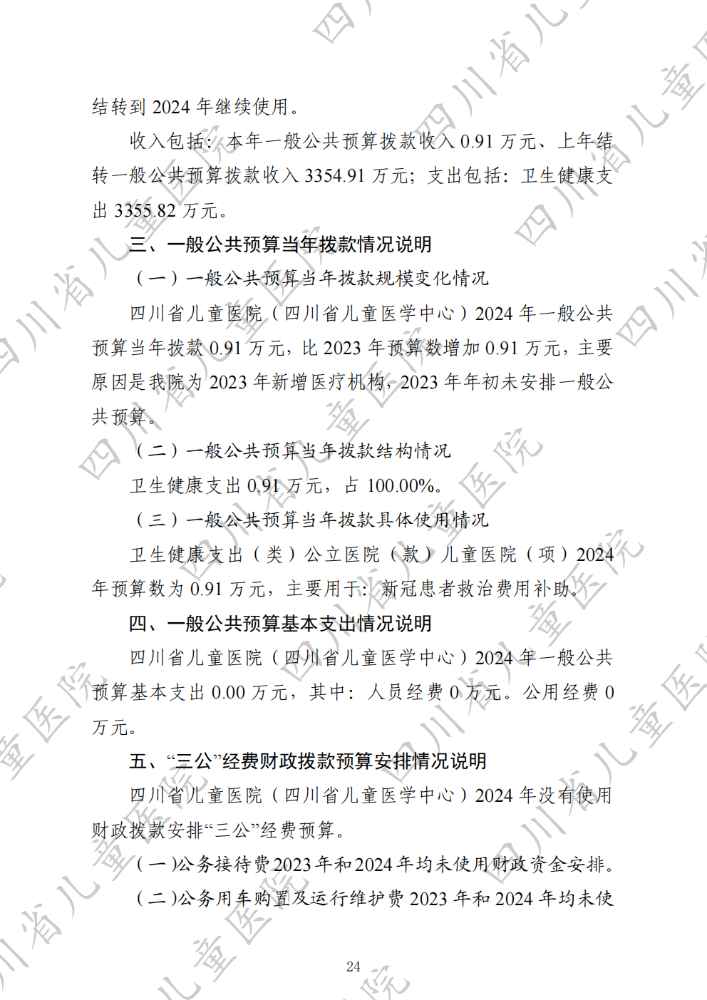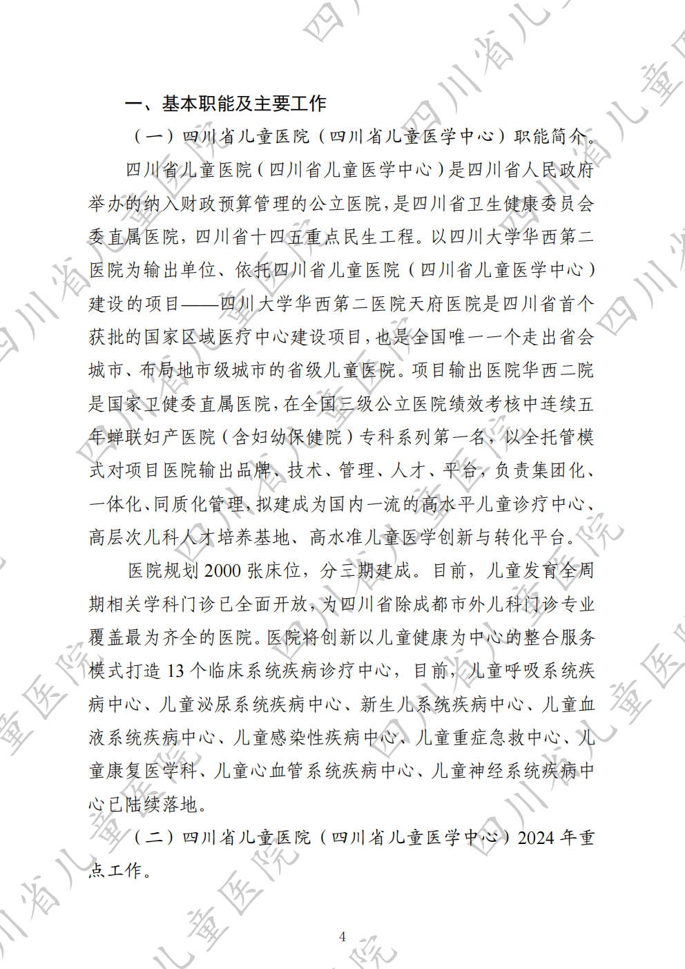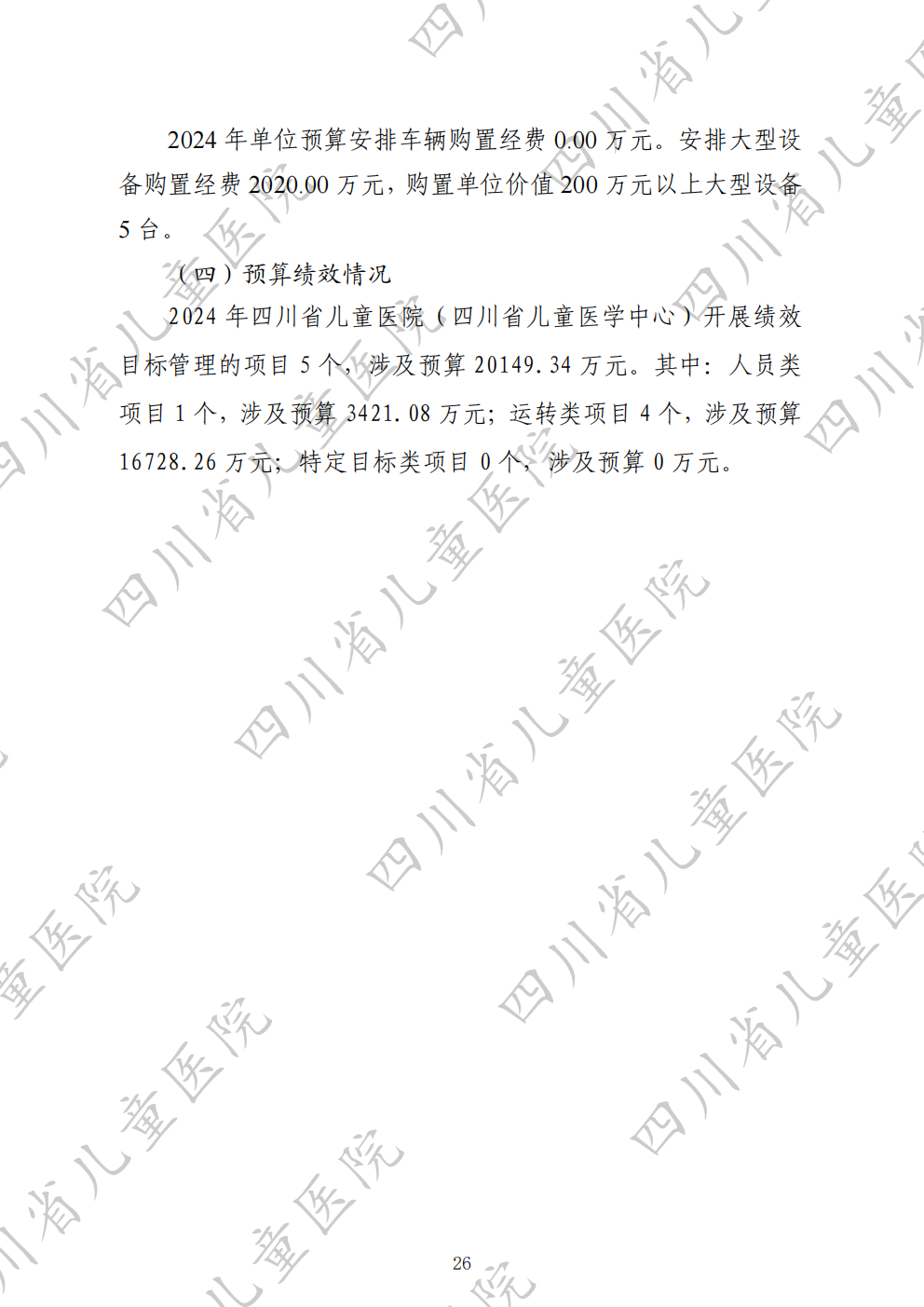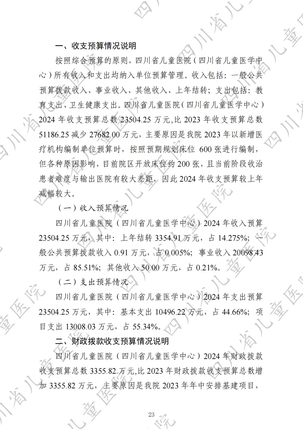 四川省儿童医院(四川省儿童医学中心)2024年单位预算