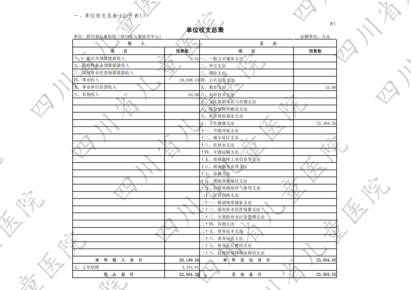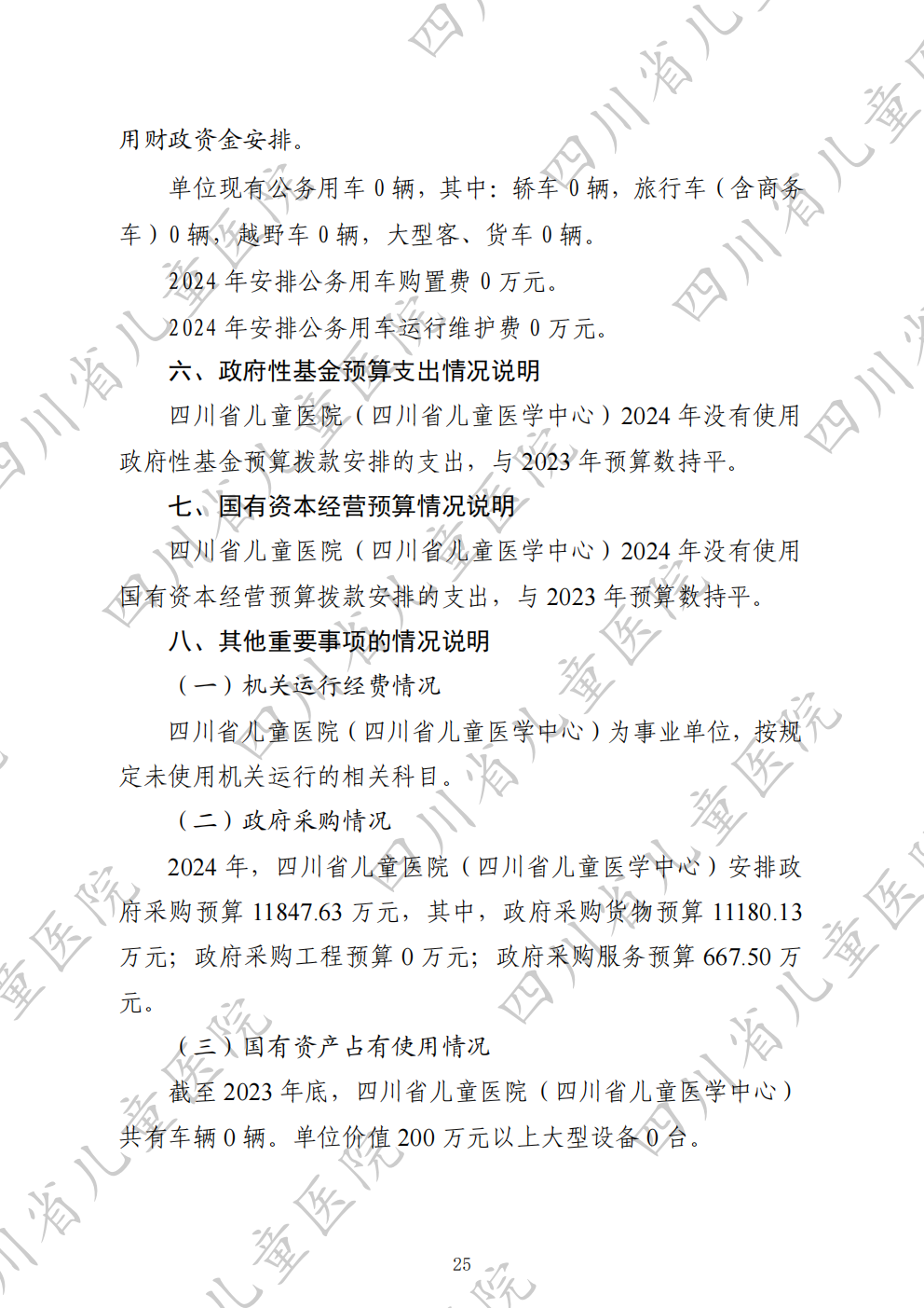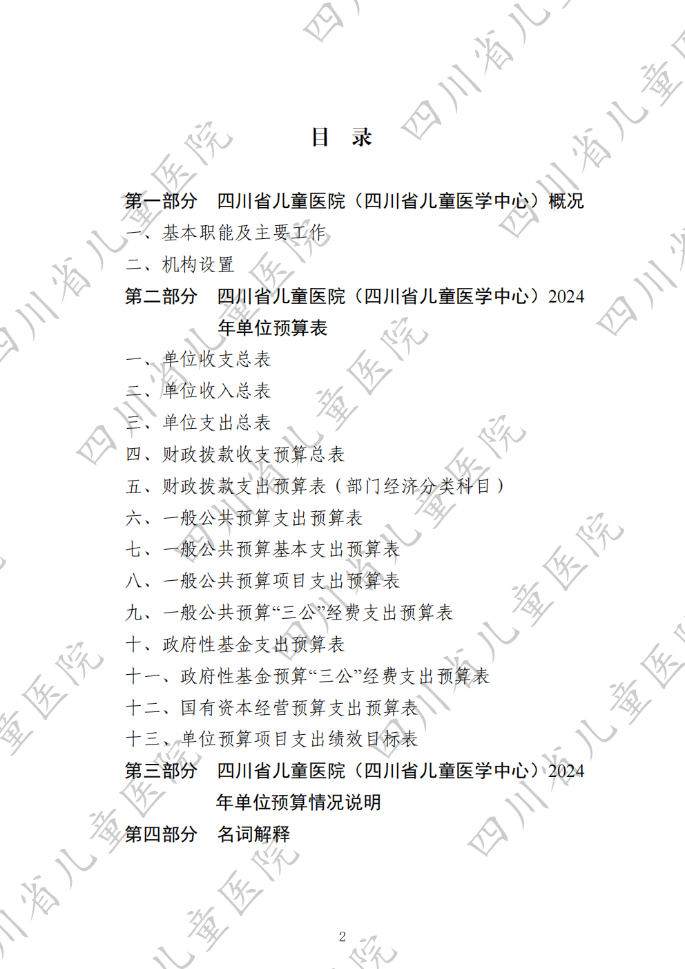 四川省儿童医院(四川省儿童医学中心)2024年单位预算
