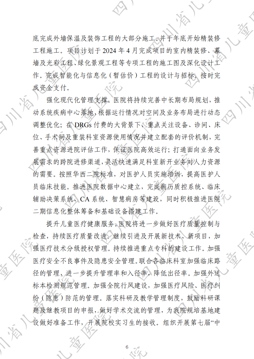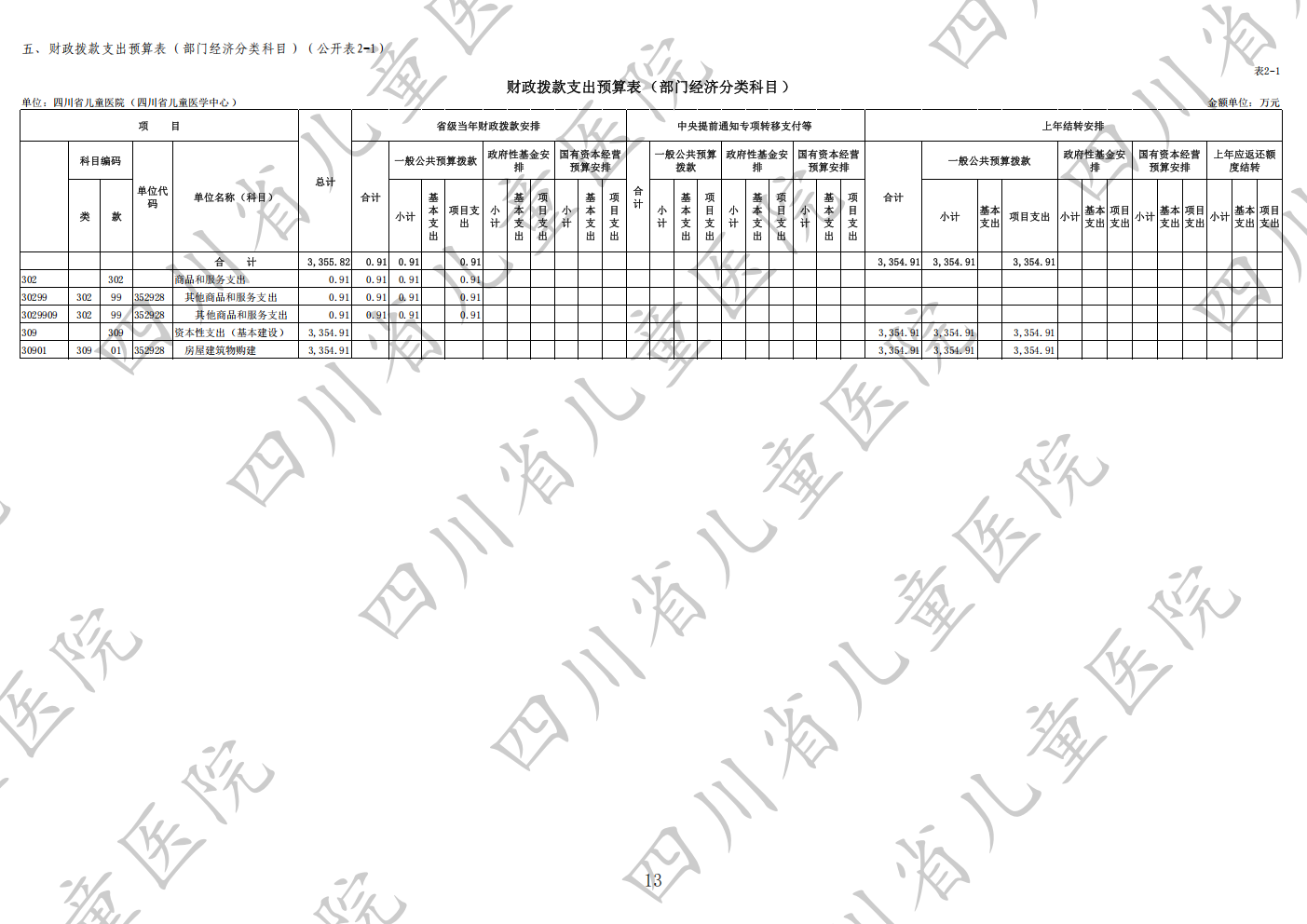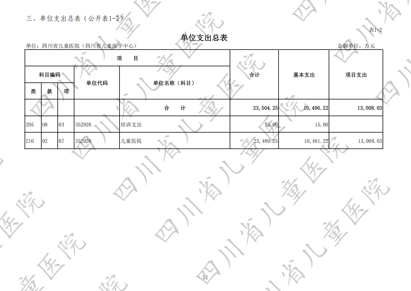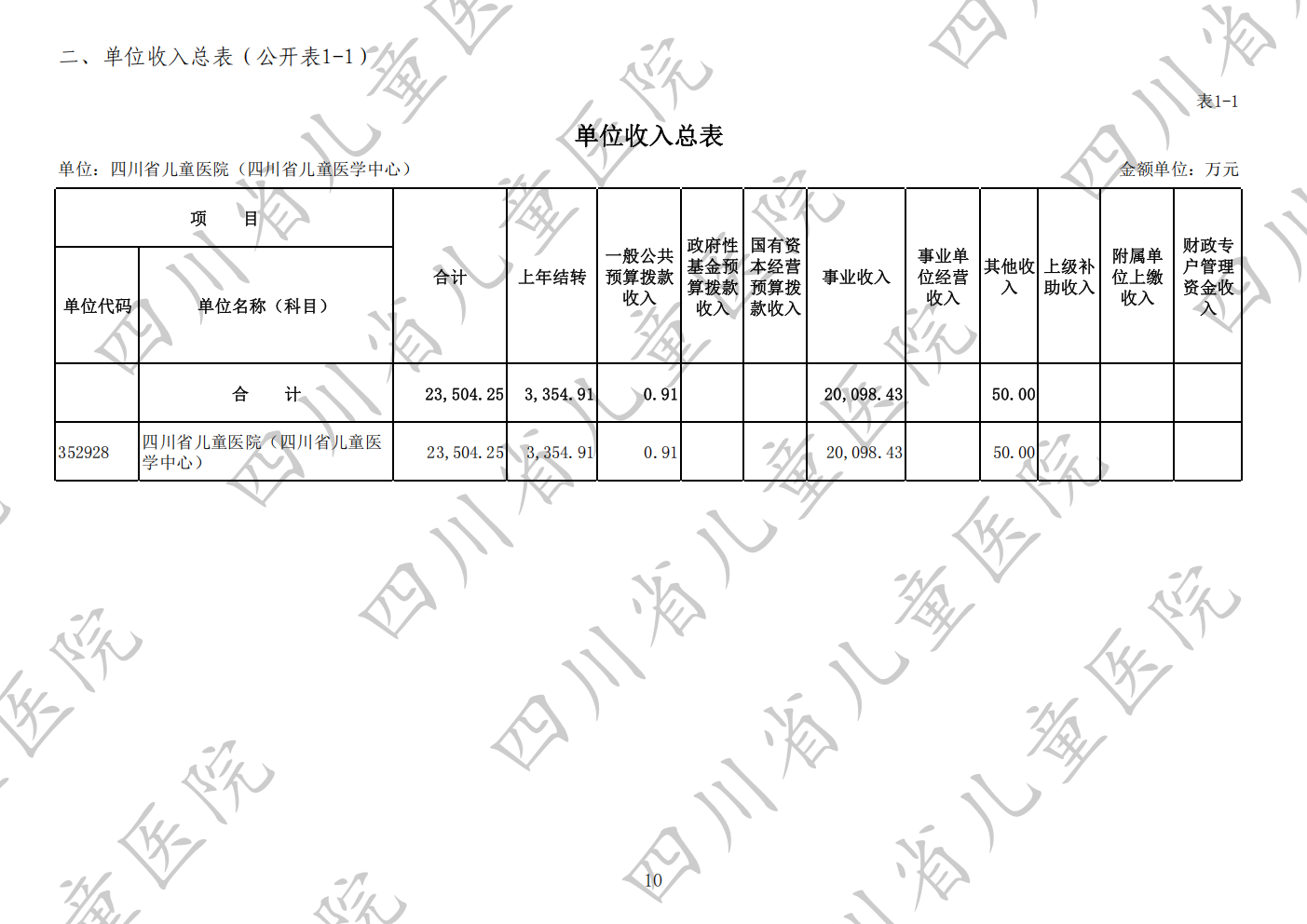 四川省儿童医院(四川省儿童医学中心)2024年单位预算