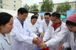 4月24日,四川大学党委书记杨泉明、党委副书记周学东、华西医学中心处长杨志刚,我院院长母得志、工会主席王晓东一行来到芦山...