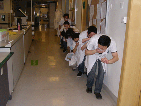 在此次消防安全培训演练中,科室特地邀请医院消防监控部武开明同志结合消防安全制度以及火灾案例,对如何树立公共消防意识、预防、杜绝可能引起消防事故的内外隐患、个人面对突发火灾事故应如何进行报警、救灾及逃生等方面进行全面的培训。对科室消防设施进行了详细的介绍。为达到实战演练效果,还组织检验科全体员工重点培训了灭火器、消火栓的使用,以及如何通过安全通道逃生的现场演练。让全体员工对消防知识有了更直观的了解。