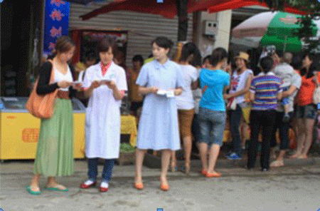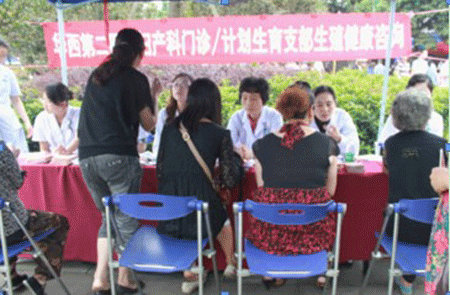 6月16日,在妇产科门诊/计划生育支部书记许良智教授和组织委员刘宏伟教授的带领下,一支由13名医生和护士组成的医疗队到郫县战旗小区进行了题为“妇产科门诊/计划生育支部生殖健康咨询”的义诊活动。上午10点左右,医疗队抵达义诊地点,积极做好义诊前各项工作,通过发送宣传册及面对面解答的形式进行义诊。此次义诊前来咨询的群众共计40多人,咨询的内容包括:月经异常、妇科炎症、生殖健康等相关问题。本次义诊活动的开展得到了广大群众的关注和赞扬,也得到战旗小区工作人员及战旗小区卫生院医生的大力支持和帮助。(供稿摄影何道会)