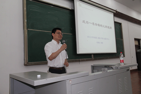 为了扎实推进本科创新人才培养,促进本科生早期接触行业,拓宽学术视野,根据学校及华西临床医学院的通知精神,积极响应“实践及国际课程周”教学活动,四川大学华西第二医院院长、华西儿童医学中心主任母得志教授,应邀于2012年6月28日,在华西校区九教演播厅,作了关于“成为一名合格的儿科医师”的讲座,有近300名师生参加了讲座。