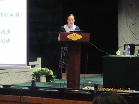 我院儿童血液科自去年6月开始“神华爱心行动”以来,已进行了60名患儿的救助,救助质量及爱心病房、绿色通道的建立均得到项目办肯定。这次会议中我院制作的易拉宝展示专门被放置在会场入口最为醒目的位置。应项目办之邀,血液科医生周晨燕进行了题为“爱心传递生命力量”的重点发言,汇报并介绍了我在社会救助与医疗救助相结合方面(包括设立爱心病房、绿色通道、志愿者进入爱心病房等)的工作经验。我院的救助工作受到大会一致好评,多家医院及当地民政部门纷纷表示希望前来我院进行参观学习。(供稿周晨燕)