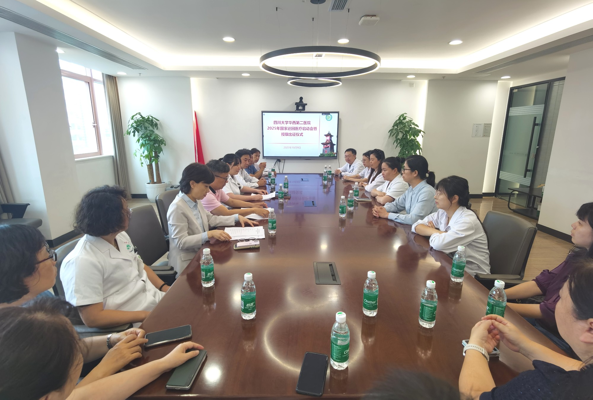 根据国家卫生健康委《关于建立常态化巡回医疗制度的通知》和四川省卫生健康委工作安排,我院2025年继续负责巡回甘孜藏族自治州,同时完成川藏铁路建设沿线单位巡回医疗。我院立即组建了一支8人并以中高级职称为主的国家巡回医疗队,涵盖儿科神经系统疾病、儿童危急重症、生殖内分泌疾病、成人心血管疾病、耳鼻咽喉头颈外科疾病、心理健康服务、妇科护理和超声医学诊断等专业。临近出发之际,医院于10月9日下午举行了2025年国家巡回医疗启动会暨授旗出征仪式,刘瀚旻院长和牛晓宇副院长出席并讲话,儿科教研室、儿童神经科、儿童重症医学科、生殖内分泌科、综合内科、耳鼻咽喉头颈外科、心理健康中心、护理部和超声科等科室负责人及全体巡回医疗队队员参加。仪式由医务部部长崔陶主持。