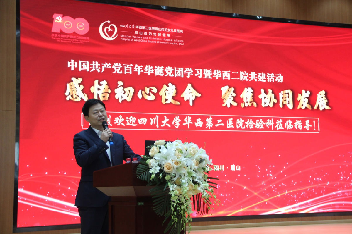 为构建“资源共享、优势互补、互相促进、共同提高”的党建工作新格局,4月18日和4月24日,检验科员工利用周末休息时间,分批次前往我院紧密型医联体医院眉山市妇保院开展了支部共建活动。本次活动得到了眉山市妇保院的大力支持。眉山市妇保院院长陈杰、副院长谢红、眉山市妇保院副书记张奕分别莅临活动进行了指导。
