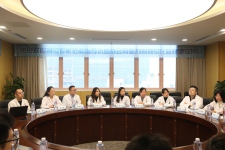 随后专家组来到了肿瘤内科病区,通过现场提问、查阅项目相关资料、随机抽取HIS系统病历、与临床医生、护理人员、临床药师及住院患者代表深入交流等多种方式,对医院骨髓抑制规范化管理流程、多部门协同机制、临床实践成效等进行全面细致的考察。