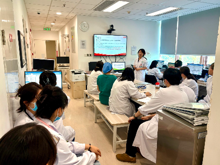2026年4月9日上午,由医务部与筑浪学院联合主办的“医管之道·医疗管理系列培训”第七期在小儿呼吸科顺利举行。本次培训以“强基提质,行稳致远——全面提升医疗质量行动:围手术期相关管理要求宣讲”为主题,由医务部张彦老师、付丹老师主讲,小儿呼吸科全体医护人员参加培训。