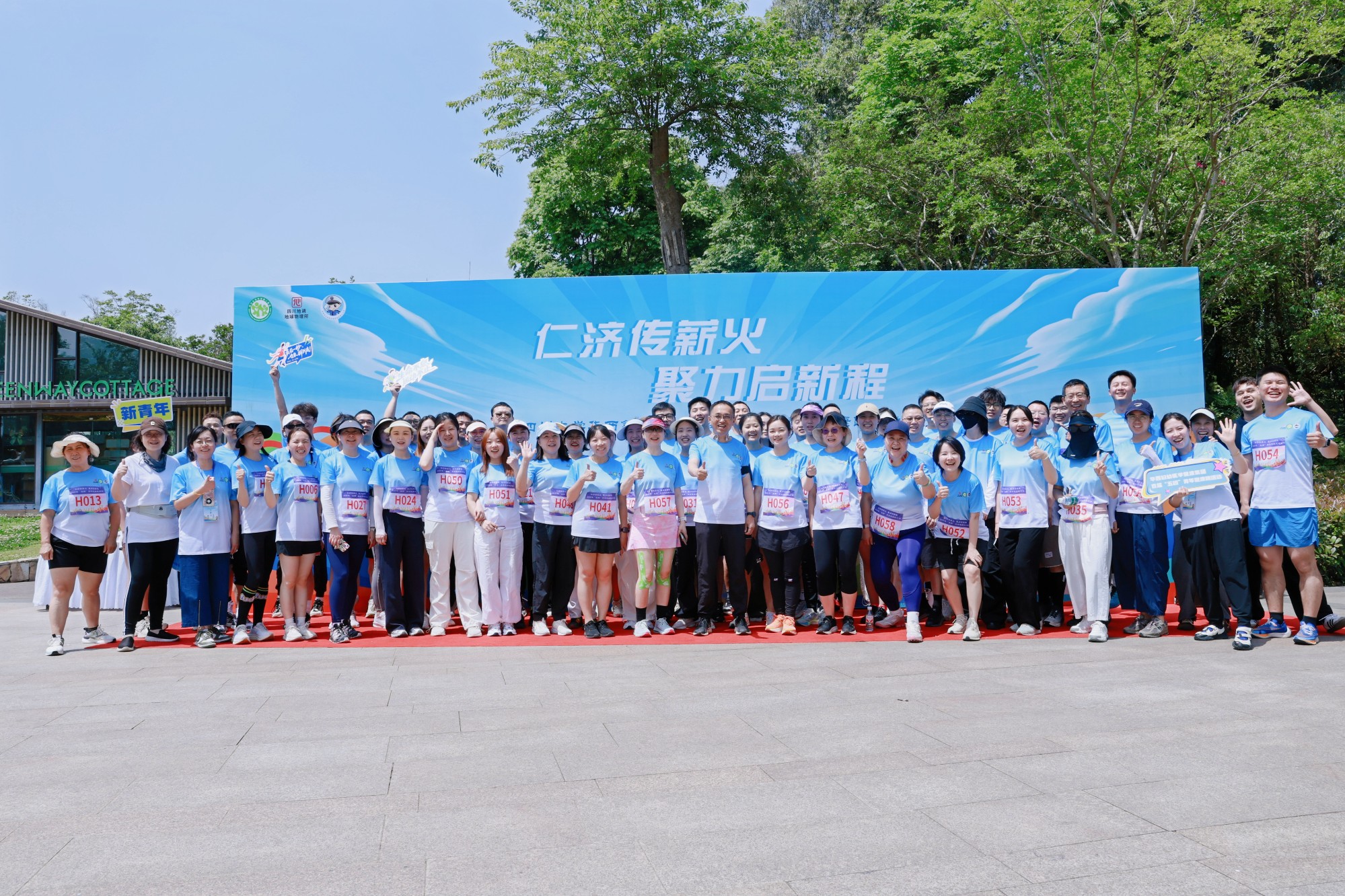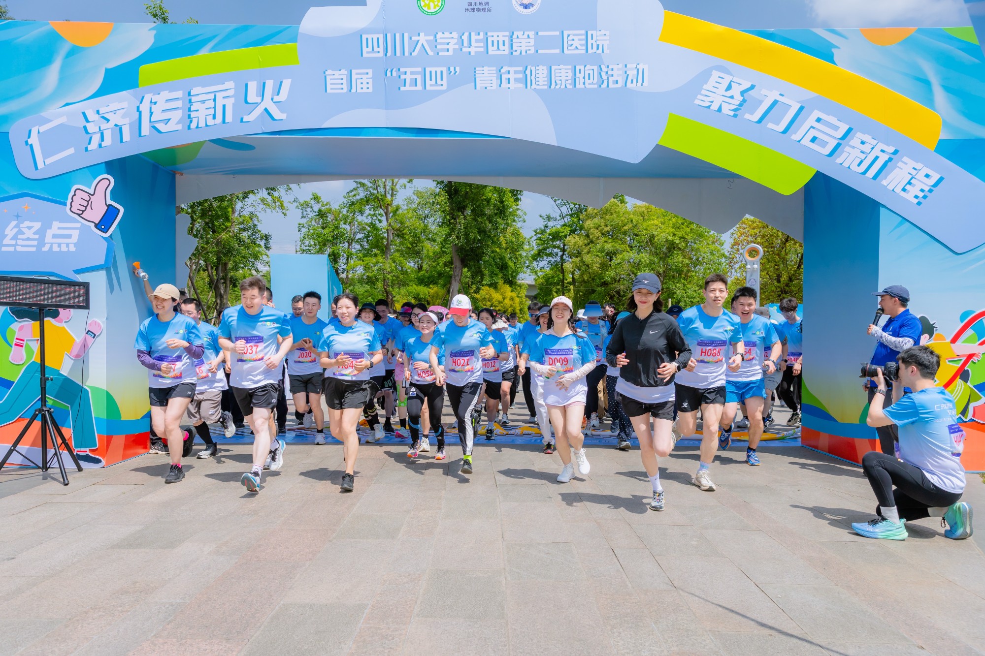 为深入学习贯彻习近平新时代中国特色社会主义思想,热烈庆祝“五四”青年节,大力弘扬“五四精神”,献礼四川大学建校 130 周年,加强青年思想政治引领,凝聚跨行业青年奋进力量,2026年4月23日,由四川大学华西第二医院团委主办,四川省地球物理调查研究所团委、成都市公安局交通管理局第三分局团总支协办的“仁济传薪火 聚力启新程”首届“五四”青年健康跑在三圣乡江家艺苑顺利举行。四川大学华西第二医院党委副书记兼纪委书记陈大鹏、四川省地球物理调查研究所党群部主任万丹,成都市公安局交通管理局第三分局党总支书记、分局长王强到场指导参与,三家单位及华西妇幼医学健康集团150余名青年职工共同参与,以奔跑致敬青春。