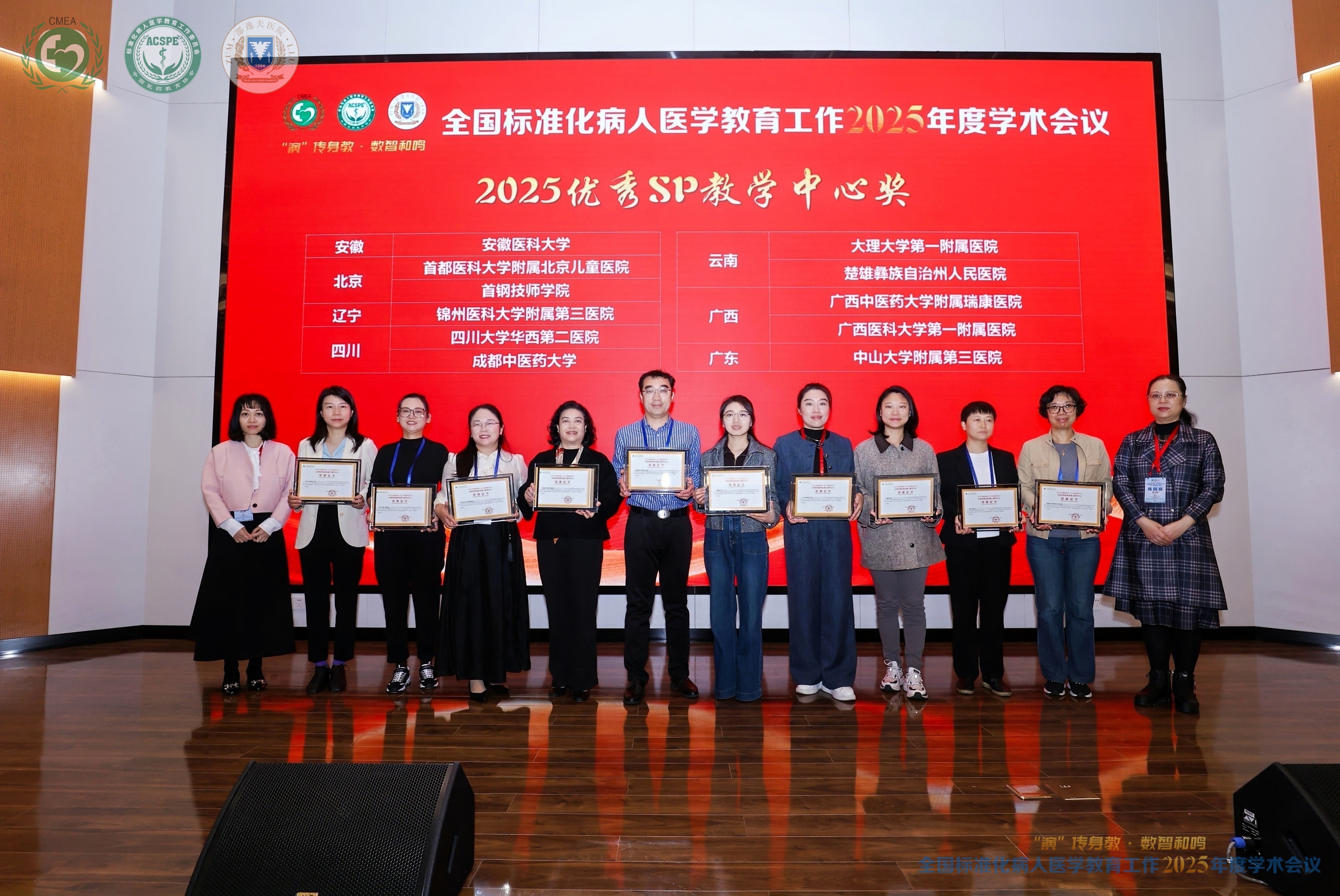 会上,我院全国标准化病人(SP)教学中心通过自评、申报、省常委评审和推荐,从来自全国十余个省市的SP教学中心中获评 “2025优秀SP教学中心奖”,所获荣誉充分肯定了我院开展SP教学工作所付出的努力和成果,标志着我院SP教育工作在规范化建设与创新发展方面取得了重要突破。