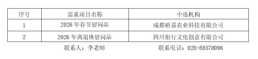 关于2026年春节慰问品、2026年离退休慰问品项目遴选结果的公告