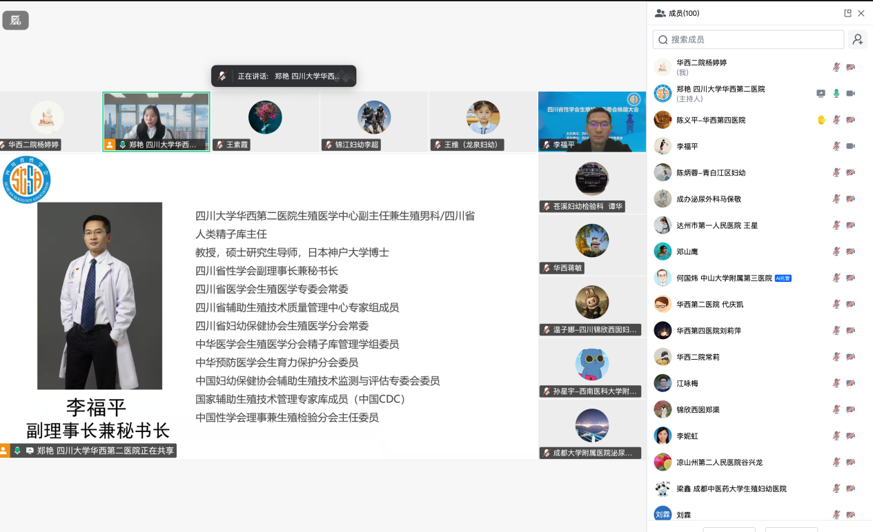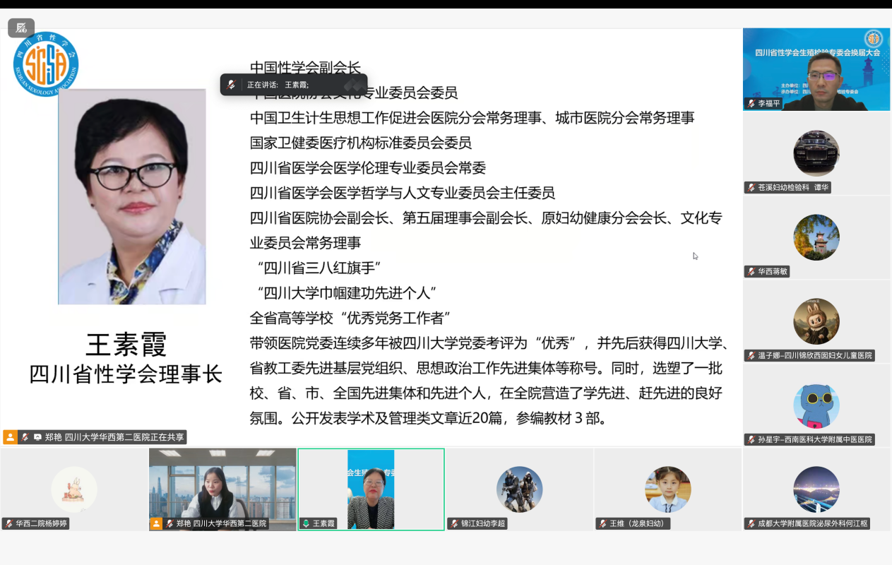 2025 年 12 月 16日,四川省性学会生殖检验专委会换届大会借助线上平台顺利召开。四川省性学会王素霞理事长、副理事长兼秘书长李福平教授领衔,112位深耕生殖检验领域的专家学者齐聚云端,共同见证这一行业重要时刻。