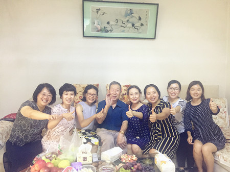 党群部门青年职工代表教师节前夕慰问退休老领导 2017-09-12 党委办公室 李亚梅李永莲 王海英 分享: 2017年9月7日中午,在第33个教师节来临之际,医院党群青年职工代表一起前往医院老领导马廷正书记家里,开展“情系夕阳”慰问活动。行政一党支部书记及党群各部门负责一同参加了慰问活动。大家为马爷爷准备了教师节绿植,并带去了医院领导的关心和问候,同时将医院最新的发展情况向老领导作了汇报。在一片欢乐祥和的氛围中,大家一起共进了午餐,提前庆祝教师节。(供稿:李亚梅,李永莲,摄影:王海英)
