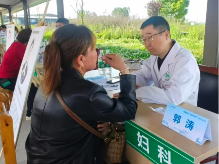 义诊现场,村民张黄林带着刚满六个月的孩子前来,担忧孩子囟门偏小。华西二院儿科专家仔细检查后耐心讲解,一颗悬着的心终于放下。郭涛同志携其余妇科专家耐心回答村民关切的宫颈癌筛查问题,普及国家“两癌筛查”的惠民工作。黄桂琼同志作为四川大学华西第二医院产科专家,充分发挥其在妇产科常见疾病、围产医学相关疾病领域的丰富临床经验,耐心细致地为前来咨询的村民提供诊疗服务。
