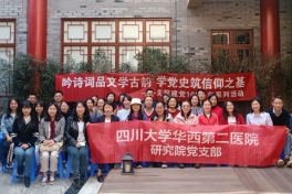2021年3月27日,研究院党团支部联合工会小组前往眉山市开展“庆祝建党100周年系列活动——吟诗词品文学古韵,学党史筑信仰之基”主题党日活动。参加活动的包括党员、团员以及研究院工作人员的家属和小朋友,党员中包含陈路、林静雯、贾知军、贺雪莲等引进人才,活动还吸引了薛志宏、...